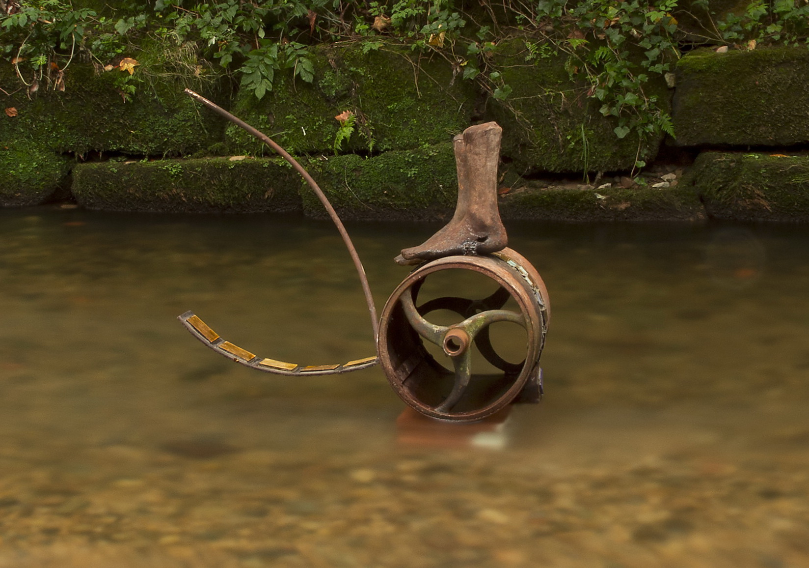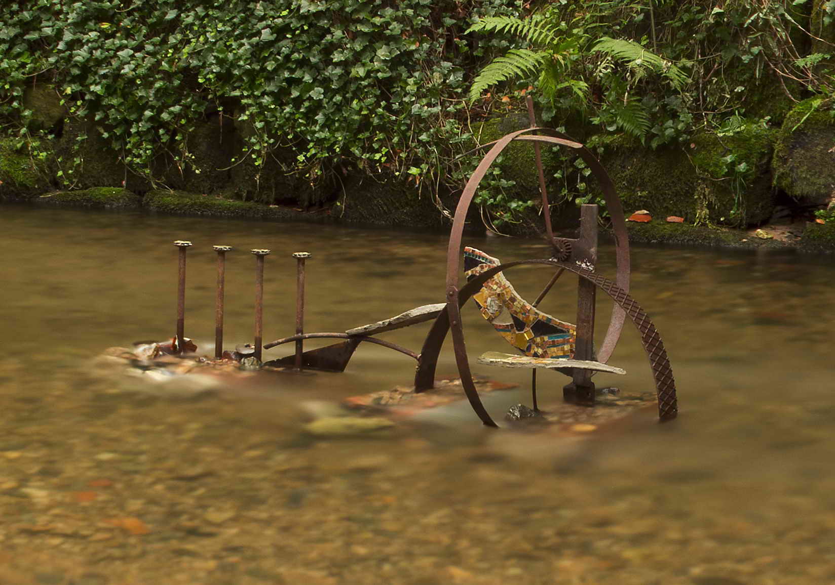Die Echaz als Lebensader der Stadt Reutlingen, das war der Grundgedanke für diese Skulptur. Die Stadt Reutlingen verdankt ihrem Reichtum diesem Flüsschen. An ihm haben sich in früheren Zeitaltern viele Industriebetriebe wie Gerbereien, Textilverarbeitende Betriebe, Maschinenbau und nicht zuletzt die vielen Mühlen angesiedelt, die ohne dieses fließende Gewässer keinen Bestand hätten, sei es als Wasserlieferant oder Energieträger. Dieses