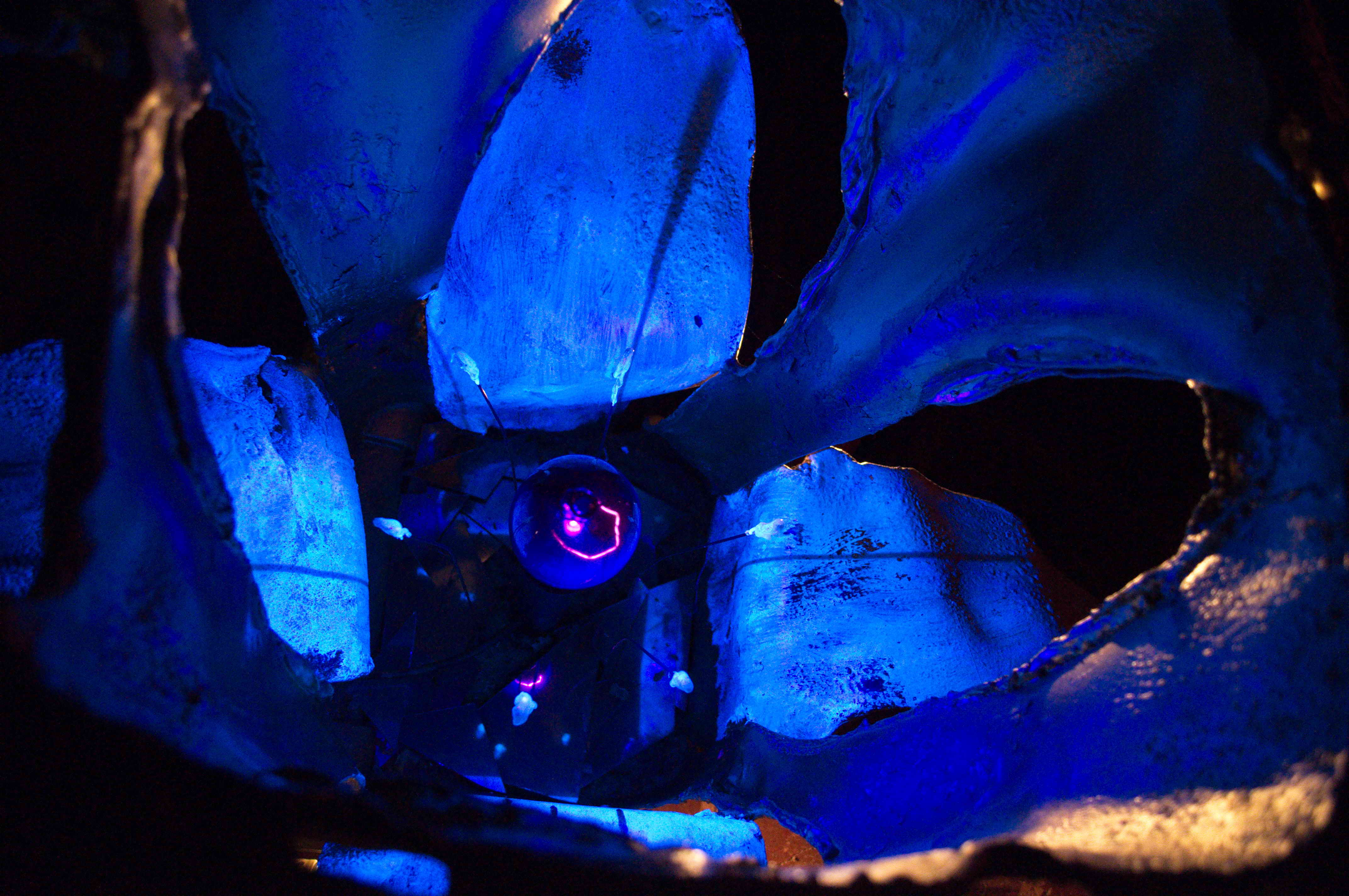 Dreiteilige Metallskulptur besetzt mit vergoldetem Glas