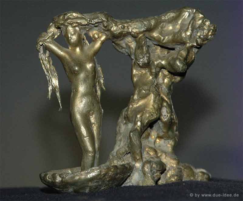 Um größere Gestaltungsmögichkeiten und einen dünnwandigen Guss zu erzielen haben wir als Metallkern Zinn verwendet. Dieses Material ermöglicht uns filigranes Arbeiten und eine verfeinerte Oberflächenbearbeitung.