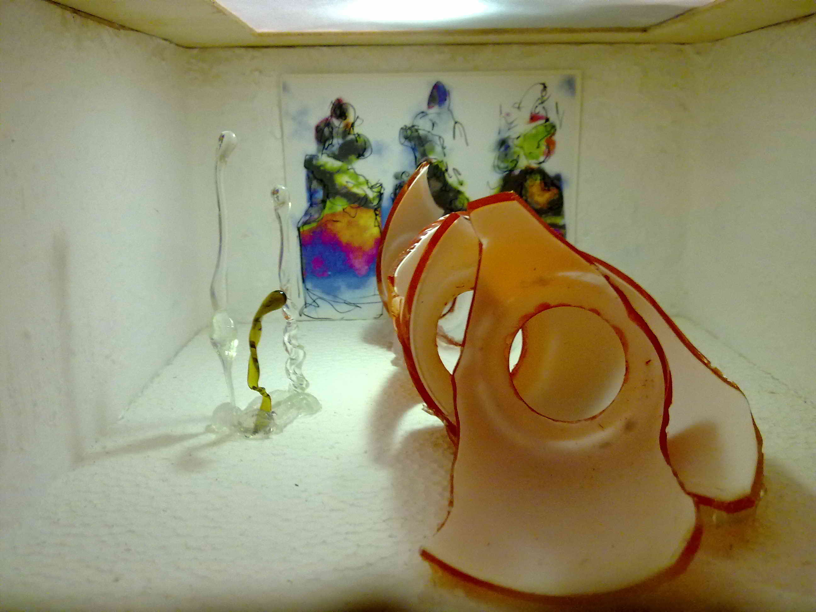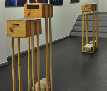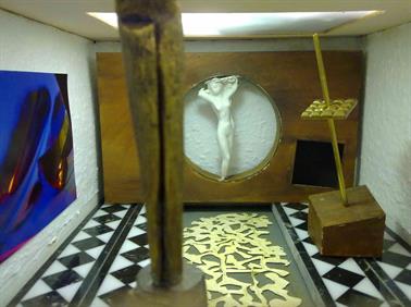 Bei dieser Art der Guckkästen muss kein Geld eingeworfen werden, um den Blick in das Innere freizumachen. Allerding muss sich der Betrachter bewußt diesen "Räumen" zuweden, um deren Inhalt wahrzunehmen.