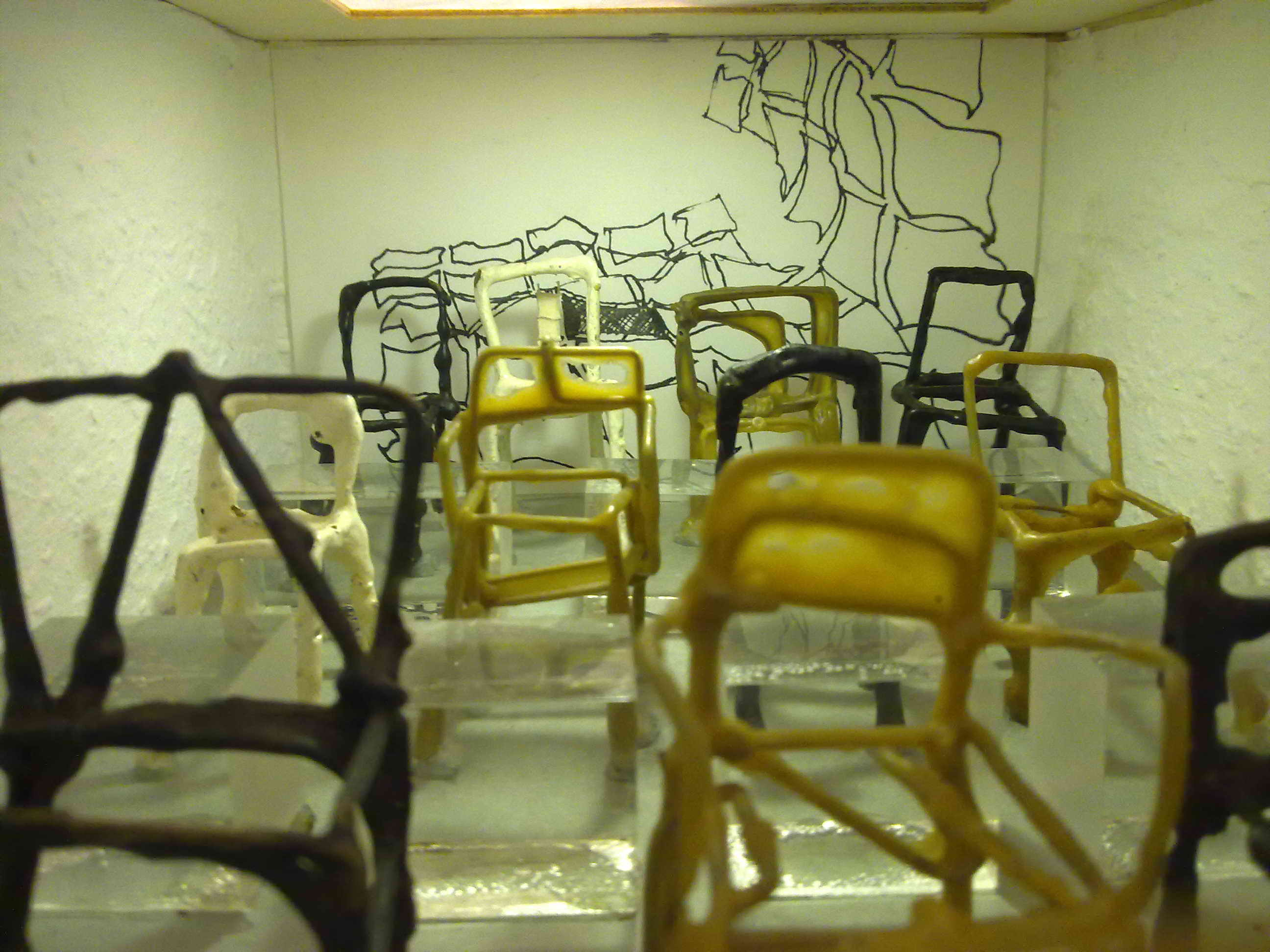 Schon im Titel drückt sich die Assoziation zwischen Phantasie und Umsetzung der Thematik Stuhl aus.