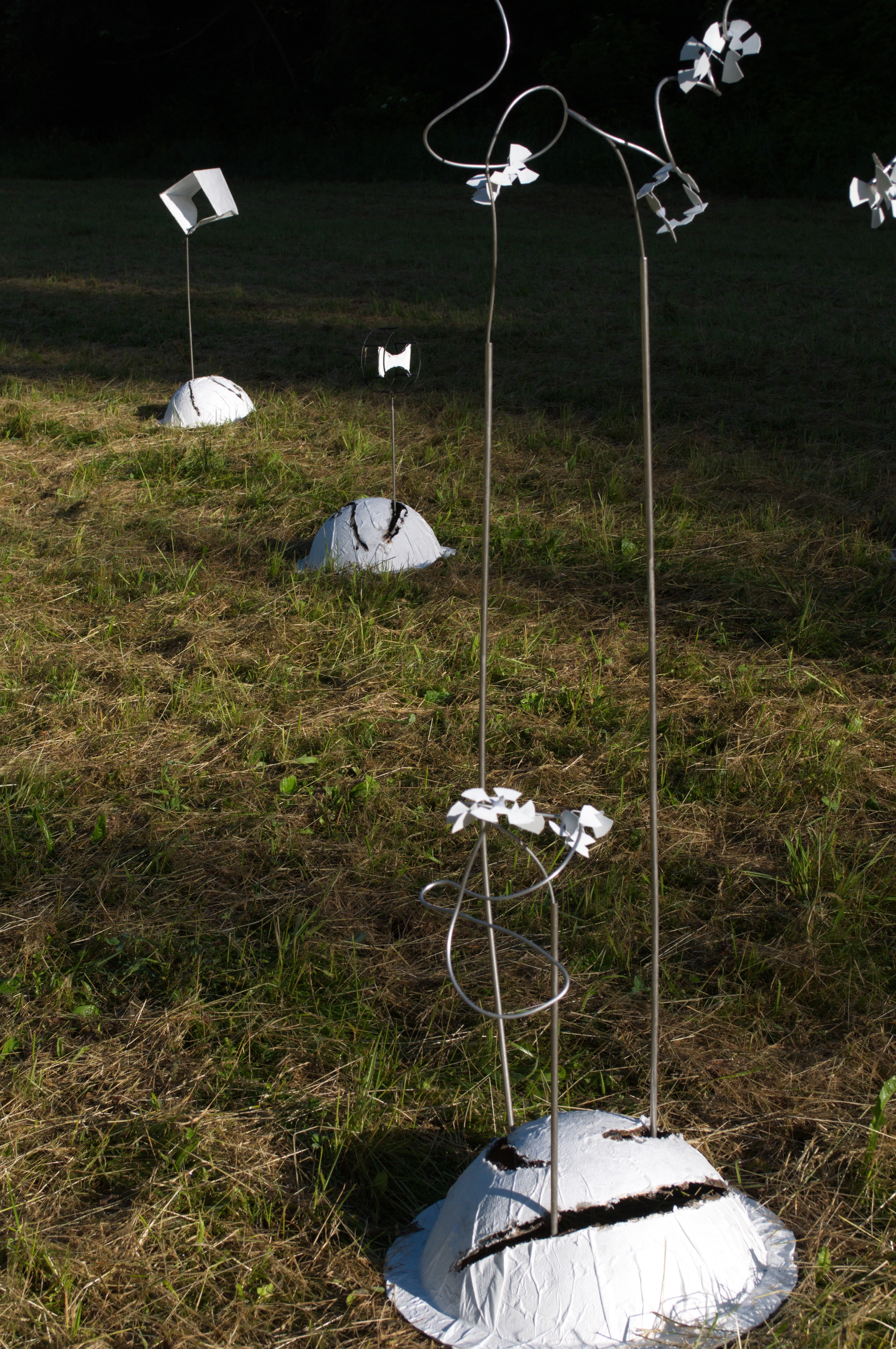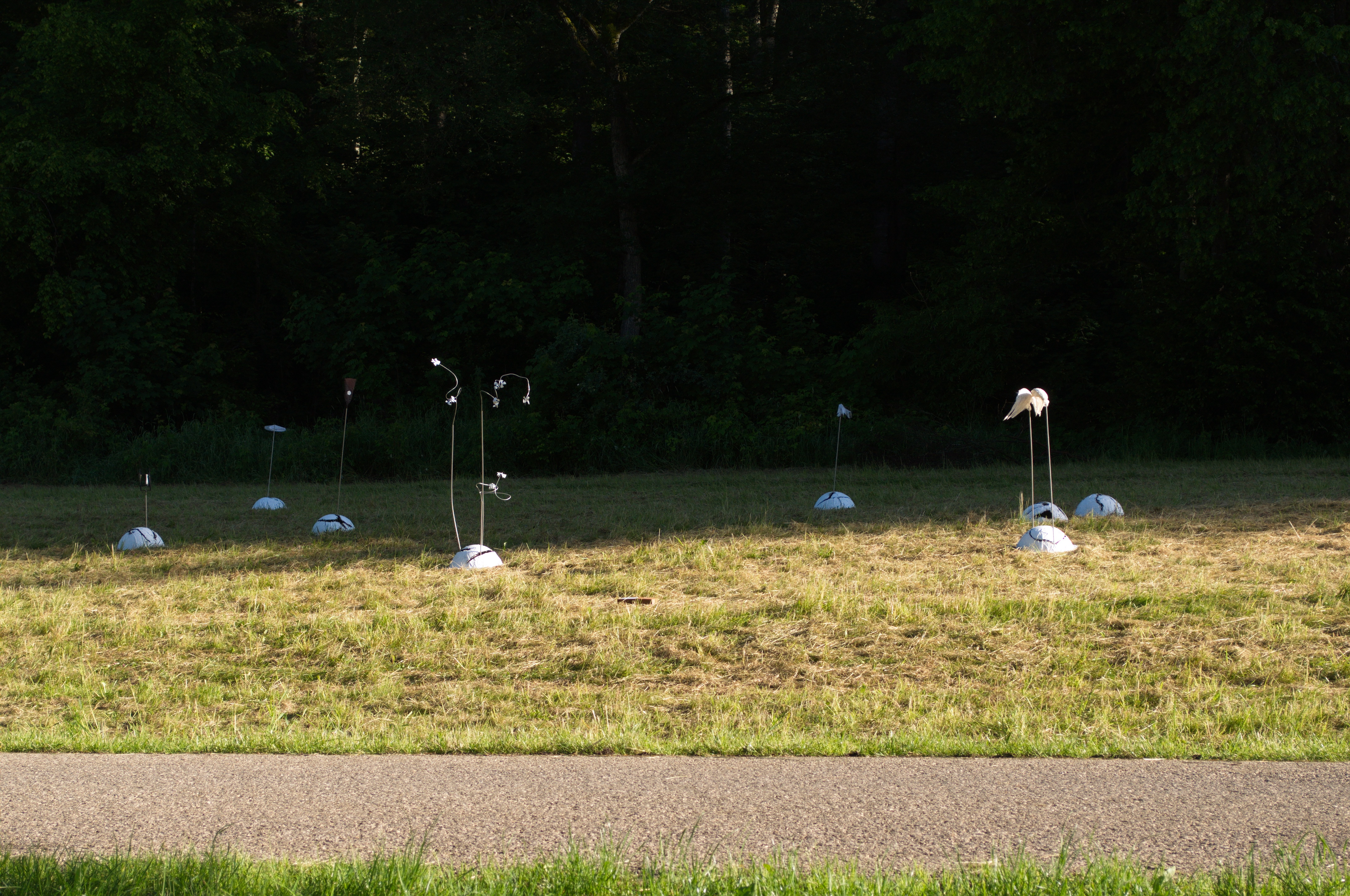 mit Draht, Papier plus X gestalten die Künstler statische oder bewegliche Objekte, die wie in den vorausgegangenen Projekten auch das Besondere des Ortes der Allee mit einbeziehen.