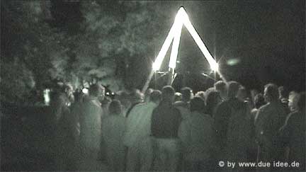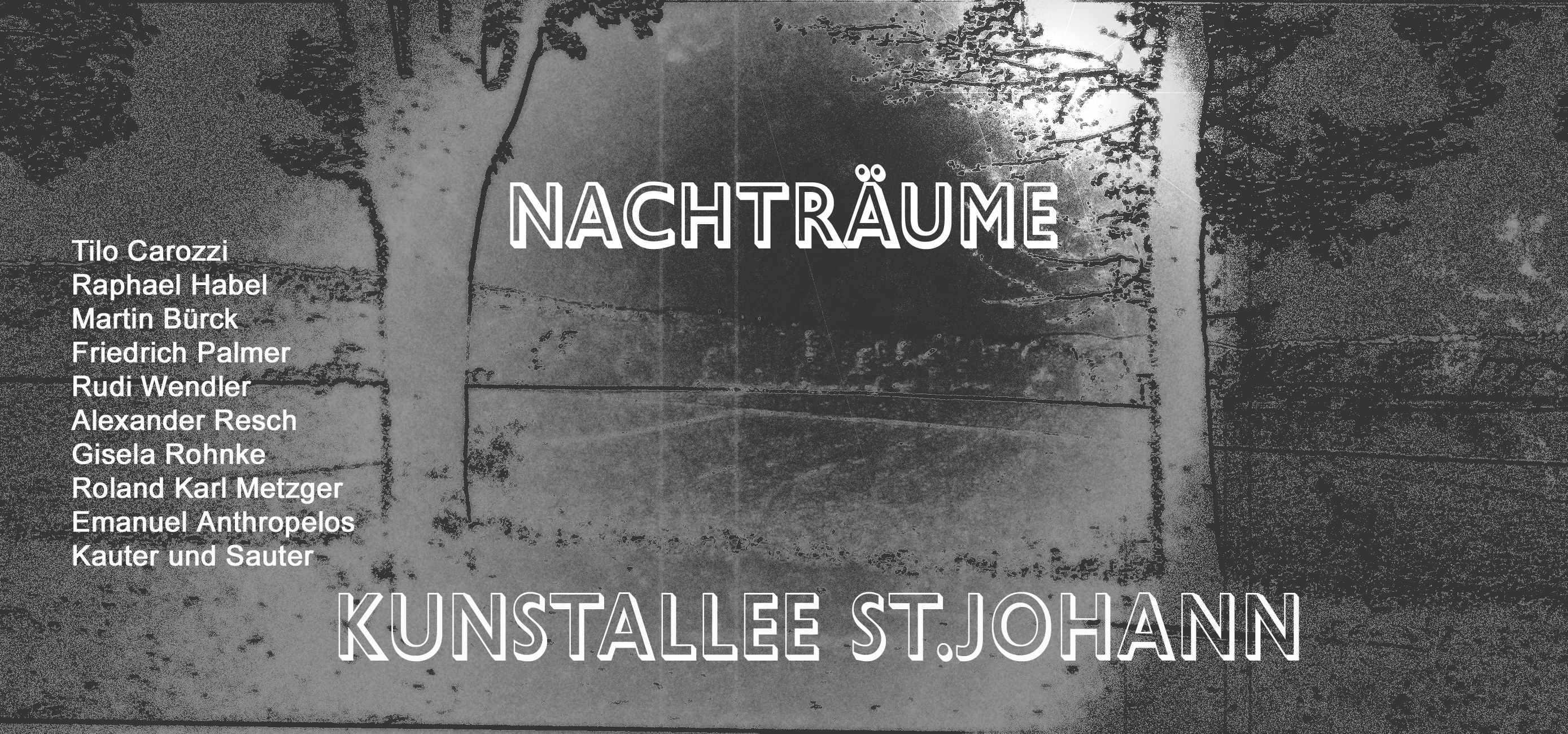 Damit beschreitet die Künstlergruppe neue Wege für die Präsentation und für die Begegnung mit Kunst im öffentlichen Raum: mit diesem erfolgreichen Ausstellungskonzept entsteht ein offenes Begegnungsforum in freier Natur mit überregionalem Ausstrahlungscharakter und nachhaltiger Wirkung. Die 1. Auflage von KUNSTALLEE ST.JOHANN im Juni 2000 hatte eindrücklich gezeigt, wie mit einem solchen Konzept von Kunst in freier Natur besonders auch Menschen angesprochen werden können, die sonst nicht mit Kunst in Kontakt kommen. Die Allee bei St. Johann auf der Schwäbischen Alb ist ein von Wanderern, Spaziergängern und Fahrradfahrern stark frequentiertes Naherholungsgebiet im Raum Reutlingen, Tübingen und Stuttgart. Sie bietet den idealen Rahmen für viele Besucher, hier auch "zufällig" mit Kunst in Kontakt zukommen. Die ungezwungene Atmosphäre im Freien steht im Gegensatz zum sterilen und für viele potentielle Besucher eher abschreckenden Rahmen einer Galerie. Durch die Anwesenheit der Künstler vor Ort ergaben sich intensive Auseinandersetzungen, Gespräche und Begegnungen mit den Künstlern und ihren Arbeiten. Die vielfältigen und anerkennenden Reaktionen der Besucher bestätigten den eingeschlagenen Weg, mit Kunst nach außen zu gehen und neue Begegnungsräume zu gestalten. Mit der thematischen Konzentration auf Nacht und Licht findet KUNSTALLEE ST.JOHANN 2003 eine neue Form. 10 Künstler stellen sich auf ganz unterschiedliche Art und Weise dieser Herausforderung. In der besonderen Atmosphäre einer Albsommernacht entsteht im Umraum von Allee, Wiese und Wald ein nächtliches Gesamtkunstwerk. Das Projekt NACHTRÄUME ist in seiner Einmaligkeit und auch Vergänglichkeit bewusst beschränkt auf die Dauer einer Nacht. Dafür markiert die Mittsommernacht einen ganz besonderen Zeitpunkt. Die Besucher selbst werden als Lichtträger mit einbezogen und so zu aktiven Mitgestaltern des Gesamtkonzeptes. Daneben finden sich statische und bewegte Lichtobjekte, Arbeiten mit Leuchtflüssigkeit, in die Erde eingegrabene Leuchtinstallationen, Licht-Klang-Kombinationen, Projektionen, Feuerorgel, Irrlichter, surreal verwandelte Traumkulissen, Lichtfelder ..., auch Werke, die mit Dunkel und Zwischenlicht wirken oder Arbeiten, die sich mit der Vergänglichkeit und der Bedrohung des Lebens auseinandersetzen. Schattentheater und musikalische Intermezzi an ausgewählten Orten sind weitere Stationen für die Lichterwolke.